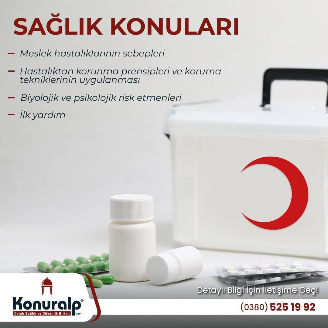 - Konuralp Bey Ortak Sağlık ve Güvenlik Birimi alanında uzman ve deneyimli kişilerin en iyi ve kaliteli hizmeti verebilmek için bir araya geldiği yetkili birimlerce onaylanmış kurumdur. İş Sağlığı ve Güvenliği, Temel İSG Eğitimleri, İlkyardım, Yangın, Mobil Sağlık gibi konularda profesyonel hizmetler vermektedir.